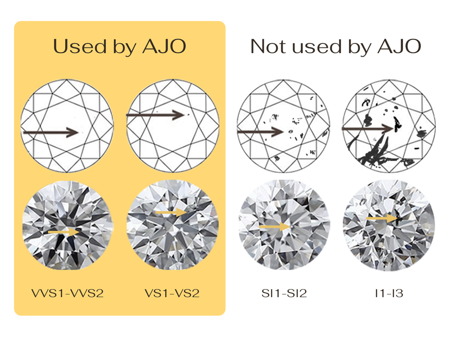 At AJO, diamond selection is guided by three core quality parameters — clarity, color, and fluorescence — ensuring that every stone delivers exceptional brilliance and structural integrity.